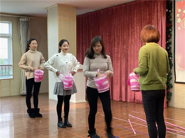 游戏开始了,老师们以班组为单位,以极高的热情参与了本次活动。游戏中,角逐激烈,精彩迭起,老师们情绪高涨,互相鼓励、互相帮助,一阵阵加油呐喊的笑声与掌声响彻整个幼儿园,每位教职工的脸上都洋溢着灿烂的笑容。