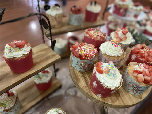 老师们个个跃跃欲试、摩拳擦掌,准备体验一把烘焙的乐趣。教师们分成四组,根据步骤进行混合、搅拌、打发、装杯等一道道工序,经过一个多小时的制作,大家的“美味”终于出炉了,打开烤箱后顿时芳香四溢。大家在品尝劳动成果时,不时竖起大拇指连连点头表示称赞,每个人脸上都洋溢着幸福的笑容。