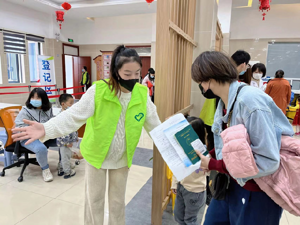 在疫苗接种点现场,月亮船幼儿园团支部的青年志愿者们身着统一的服装早早来到接种点,守在每个路口,为学生和家长提供方便;守好1米线,为家长和学生的健康保驾护航;帮助家长健康登记,提高效率;辅助拿包,管理服装做好“候场”;留观现场,注意着每一个孩子,那关怀的样子就是最美的形象……志愿者们忙碌在接种各项流程的关键点上,形成了一道亮丽的风景。