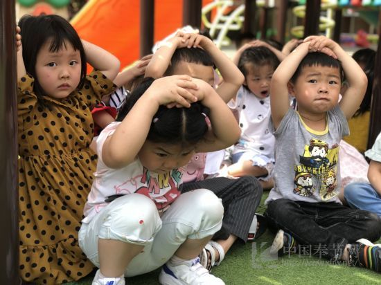 随着上午10:00警报声响起,我园的防震应急演练活动正式启动。全体教师听到警报声,迅速组织幼儿快速、安全地躲避到桌子、钢琴等坚固的家具下面。10:02分发起第二次警报,全体教师立即组织班级幼儿迅速、有序、安全的撤离教室到操场集合。待全体师幼到齐后,各班教师开始清点人数并上报,整个过程用时短并且有条不紊。